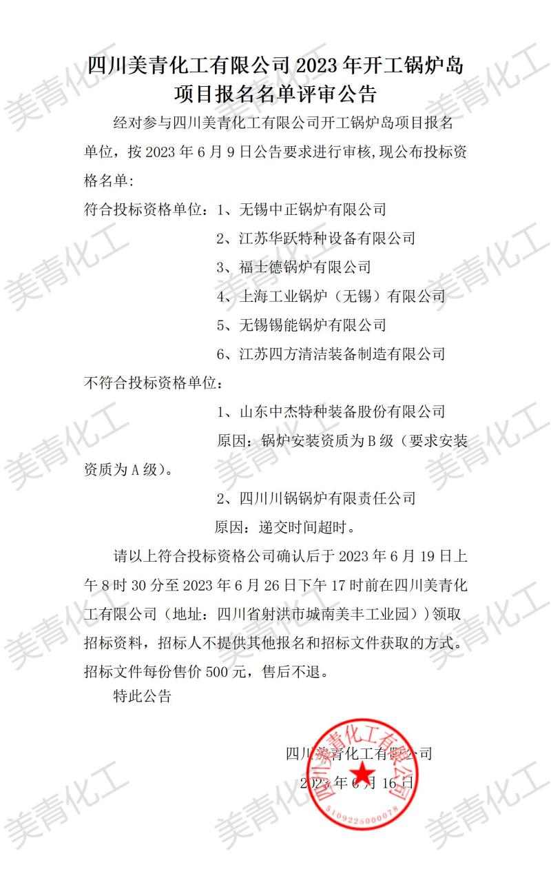 開工鍋爐島項目報名名單評審公告